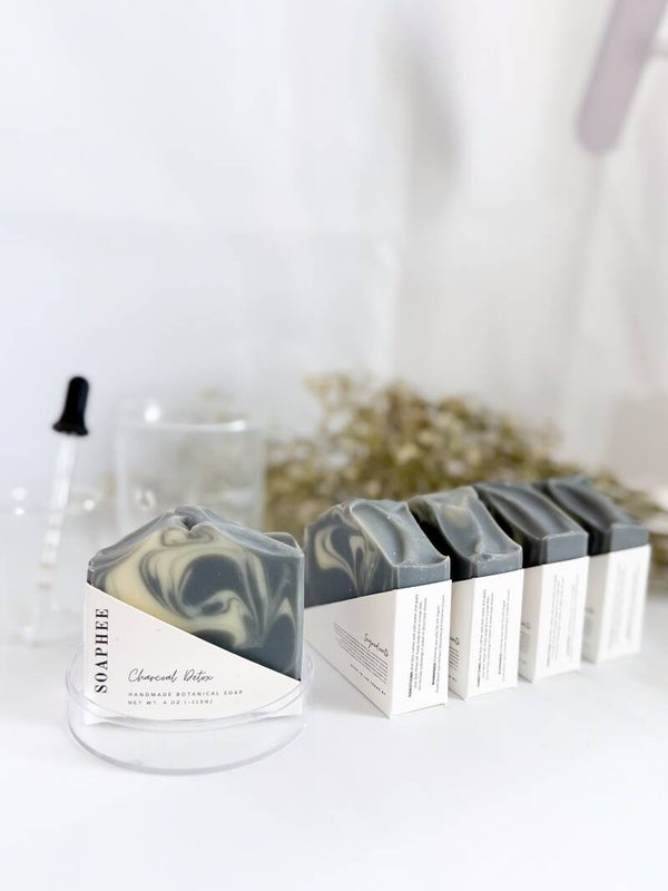 Purify and rejuvenate your skin with our Charcoal Oasis handmade soap. Formulated with activated charcoal, this soap effectively draws out impurities and toxins, leaving your skin feeling clean and refreshed. A touch of colloidal oat offers mild exfoliation, gently buffing away dead skin cells and revealing a smoother, more radiant complexion.